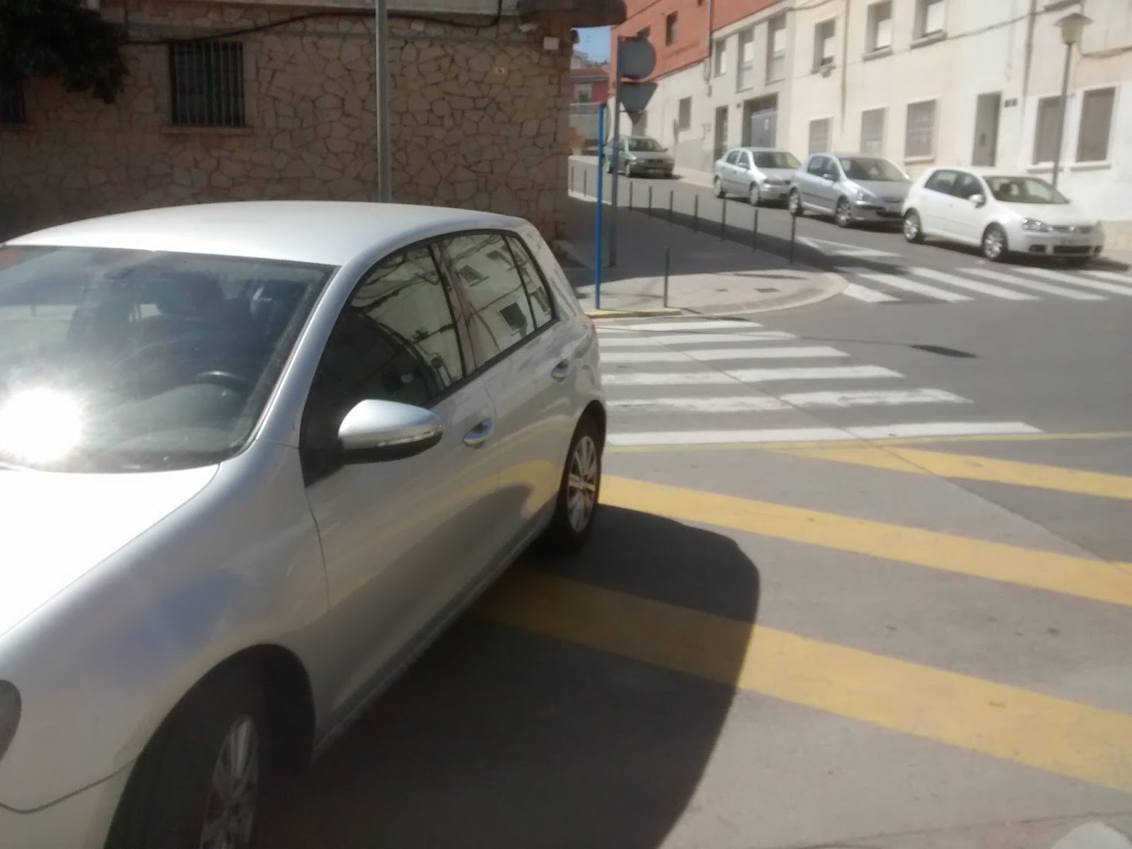 Carrer Amèrica... Les ratlles groges estan per a fer més bonic el carrer.